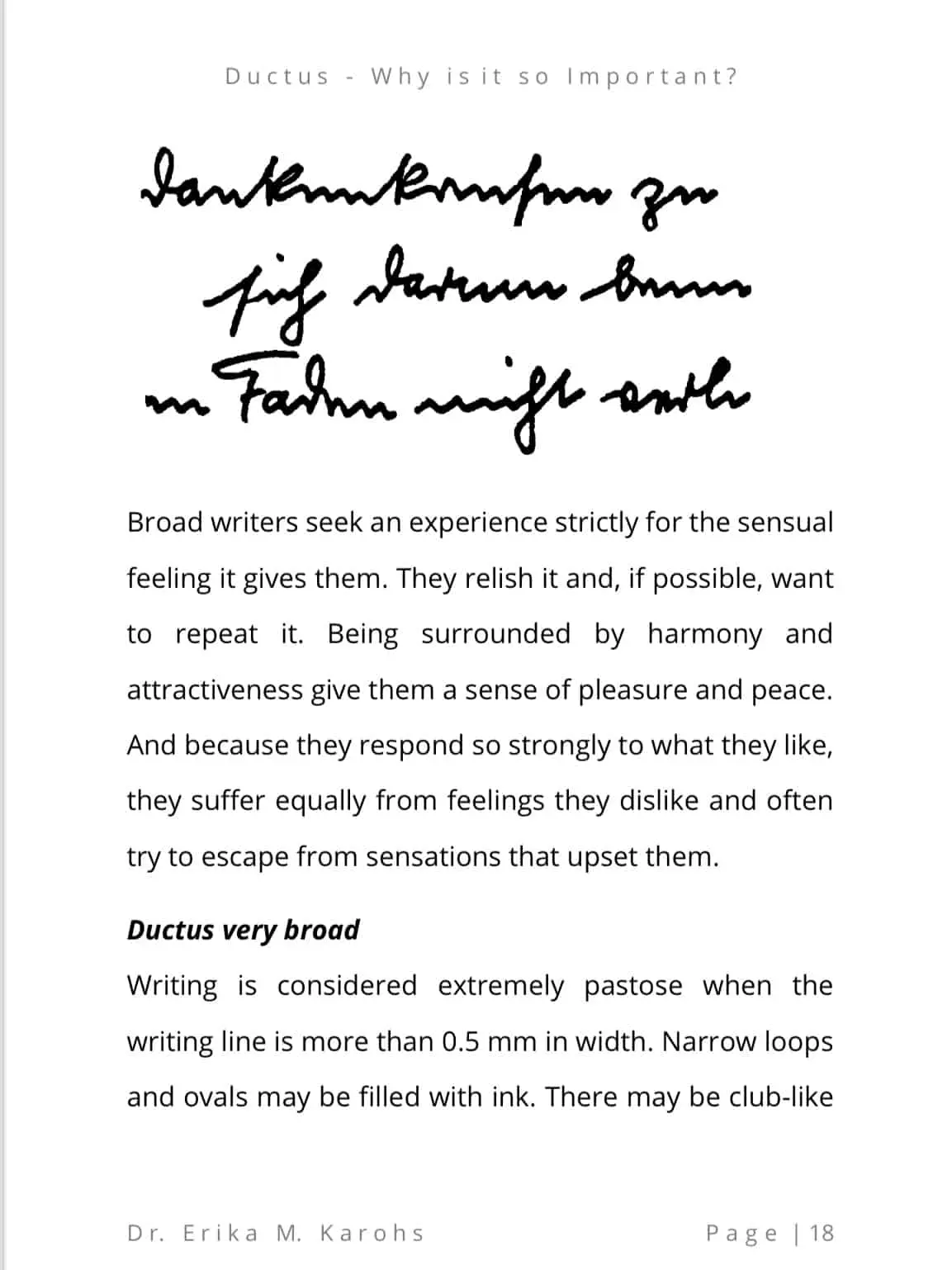 Ductus – Why Is It So Important is an Inner Circle ebook series written by Dr. Erika M. Karohs, Ph.D., Ed. D. Ductus is a long neglected indicator in the world of graphology literature. It is explained in detail starting from what affects the ductus, the kinds of ductus to writing examples.