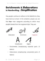 Enrichments and Elaborations in Handwriting + Simplification is an Inner Circle ebook series written by Dr. Erika M. Karohs, Ph. D., Ed. D. This e-book explains in detail about the few people who continue exactly the same way of writing they learned in school. The variations used usually fall into several categories: Elaboration, Enrichment, Copybook, Simplification, and Neglect. This book discusses the different kinds of Elaboration and Enrichment within each writing zone and their meanings.
