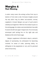 Margins and Their Meaning is an e-book written by Dr. Erika M. Karohs. This e-book explains the various margins, both in size, shape, and position, in handwriting and their meaning.