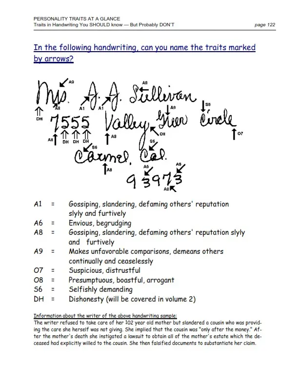 - Visual Guides showing how to recognize each trait in real handwriting samples.
