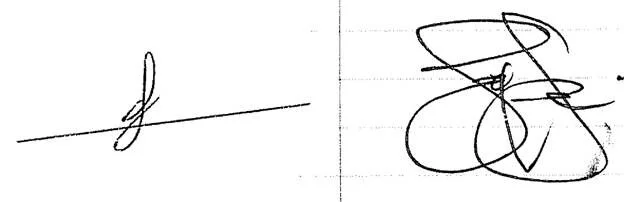 Both handwriting samples contain so-called “mirror strokes.” Today’s Lesson will cover example 1. Since sample 2 exposes many additional traits, you will receive the explanation for that signature in Sunday lesson 2.